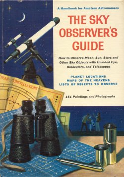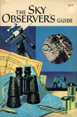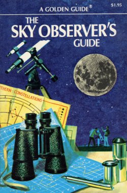 Sky Observer's Guide is a reprint of a dustjacketed hardcover published in 1959. The first softcover edition is shown to the right. © Copyright 1965 by Western Publishing Company, Inc. Designed and Produced by Artists and Writers Press. Printed in the U.S.A. by Western Printing and Lithographing Company. Published by Golden Press, New York. Number on the spine is 24009. (all printings of this book have the number 24009) A first printing will have an A on the last page. Listed as a Golden Handbook.